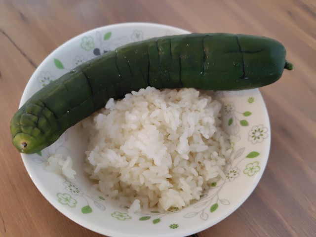 🍽️ 12:25|昼食:ご飯・きゅうり・鶏肉。